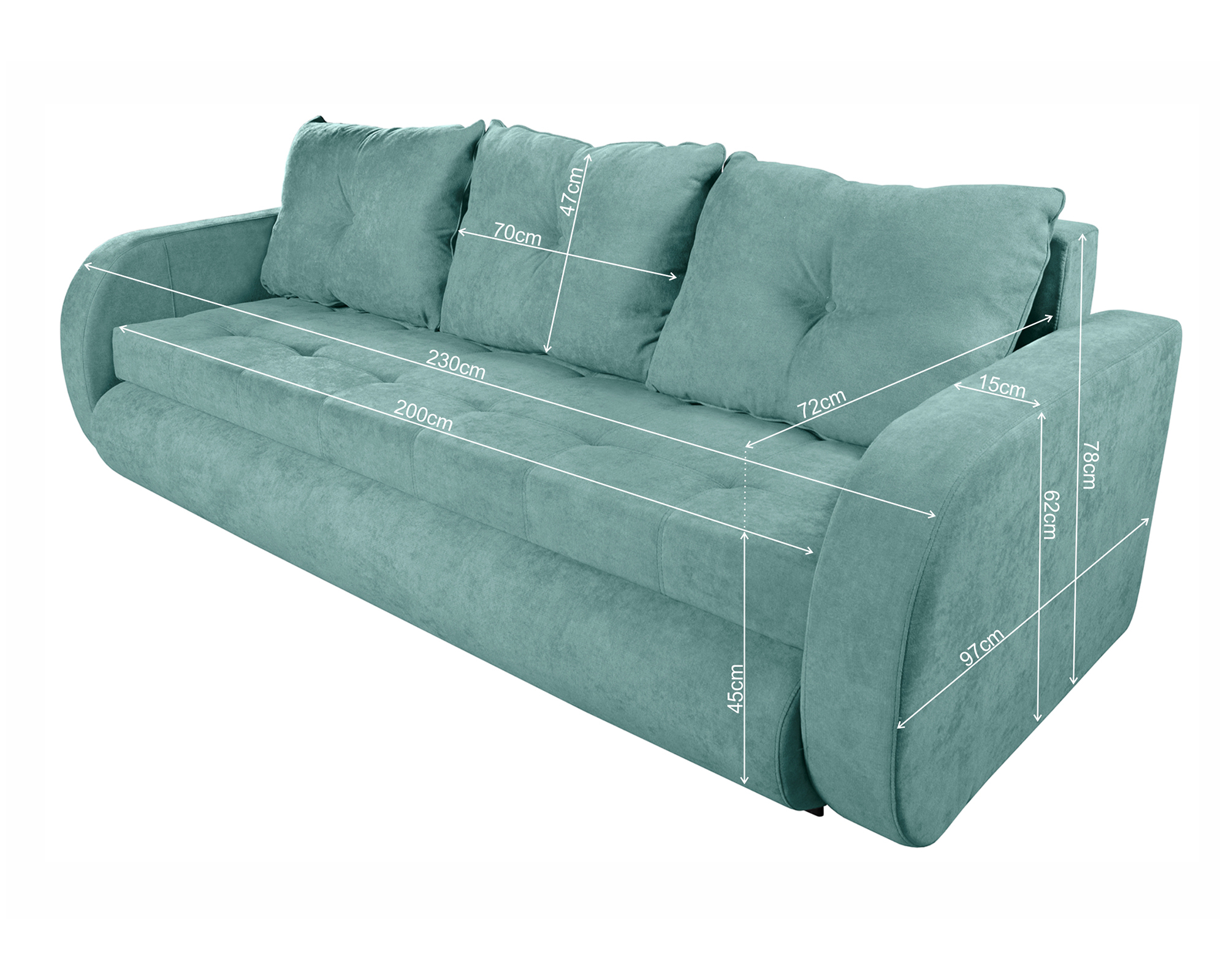 Canapea Extensibila Bedora Siena, 3 locuri, cu lada de depozitare, textil, mint