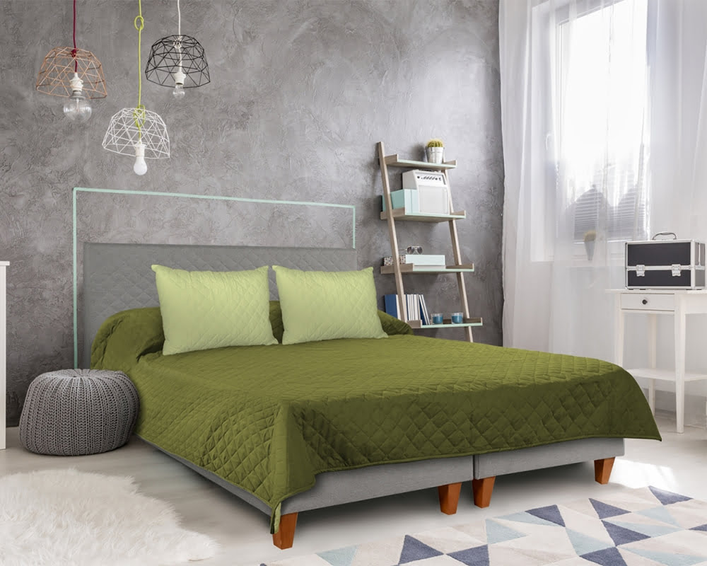 Cuvertura De Pat Alcam Double Face, 210×220 cm, microfibra, olive/lime
