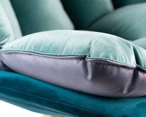 Fotoliu rotativ cu spatar inalt, structura metalica culoare neagra invelita cu textil 7033-27 , picioare lemn masiv culoare natural,perna detasabila doua fete, o fata catifea culoarea turcoaz 65 si cealalta fata culoarea gri HE560-43