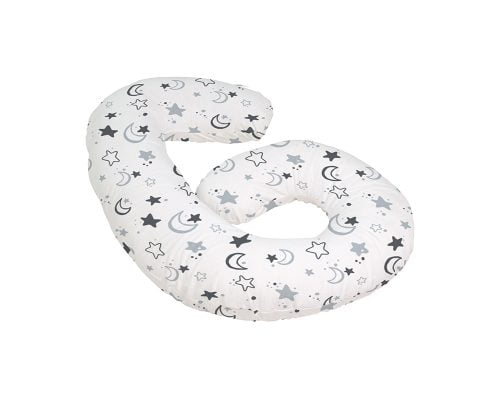 Perna Gravide Bebeluca Night, fibre siliconice, husa microfibra detasabila, lavabila, alb cu model