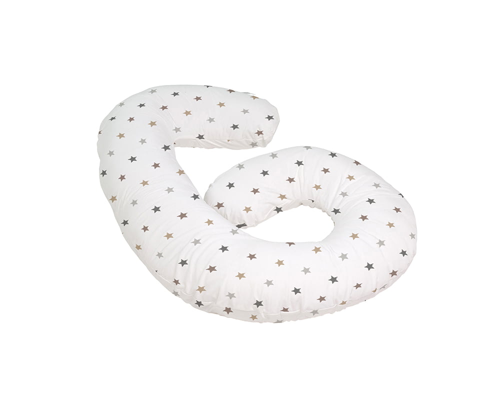Perna Gravide Bebeluca Stars, fibre siliconice, husa microfibra detasabila, lavabila, alb cu model