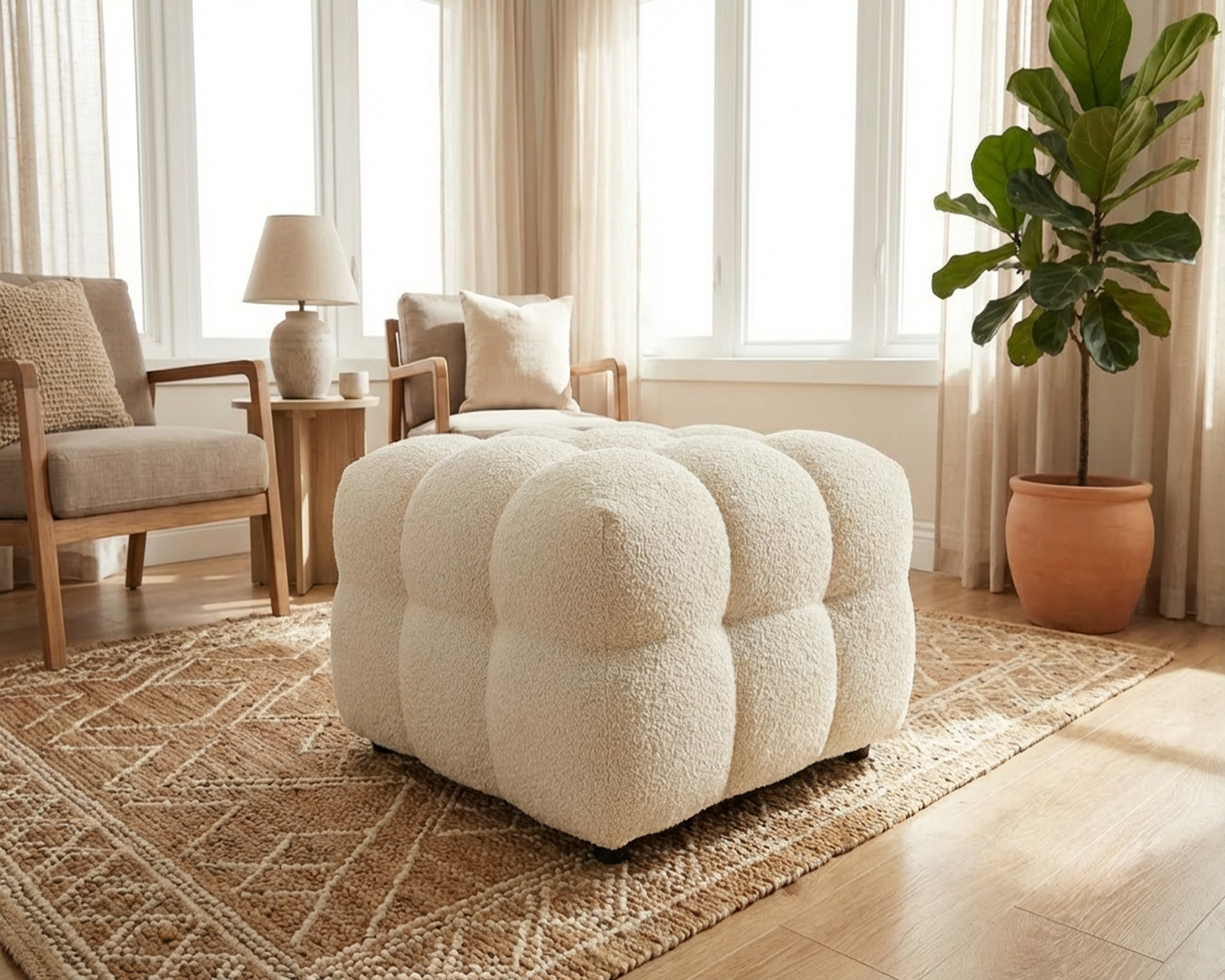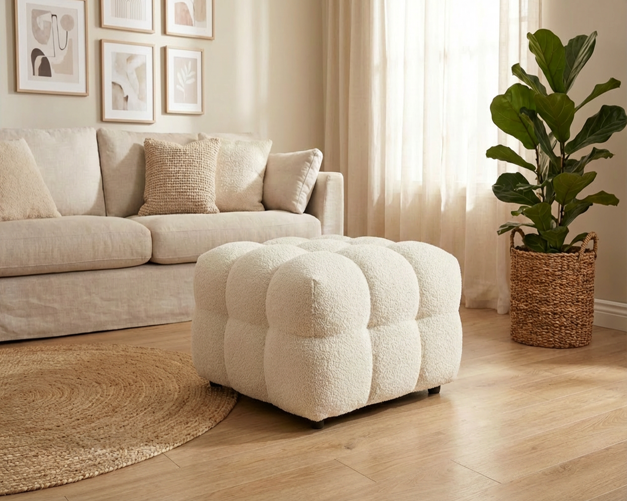 Pouf Bedora Teddy, Ivory, 90x90x43 cm